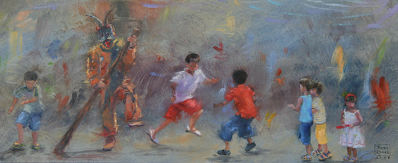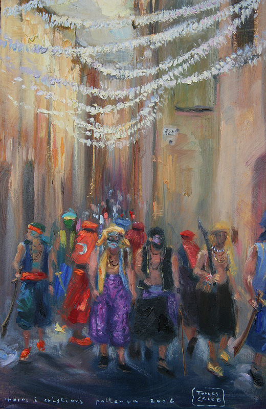 Moros i cristians a Pollença. Oli damunt fusta. (35x22 cm)