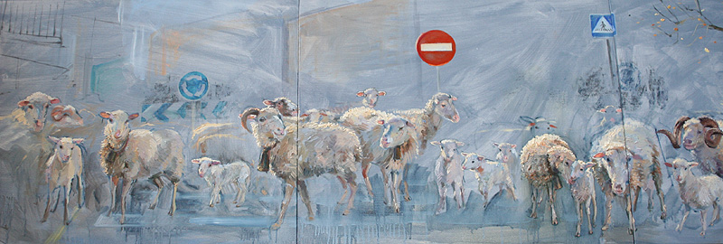 Ovelles a les beneïdes. Cartró entelat.(46x165 cm)