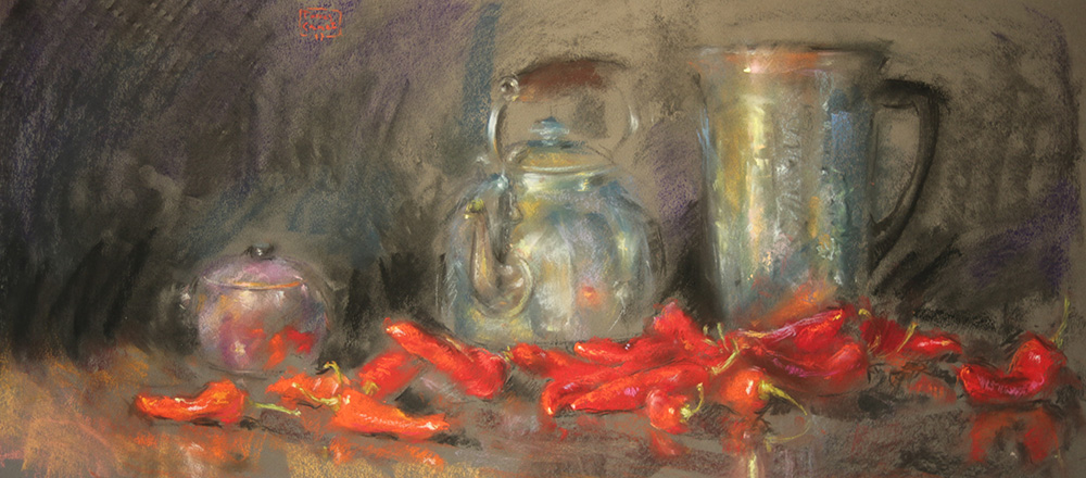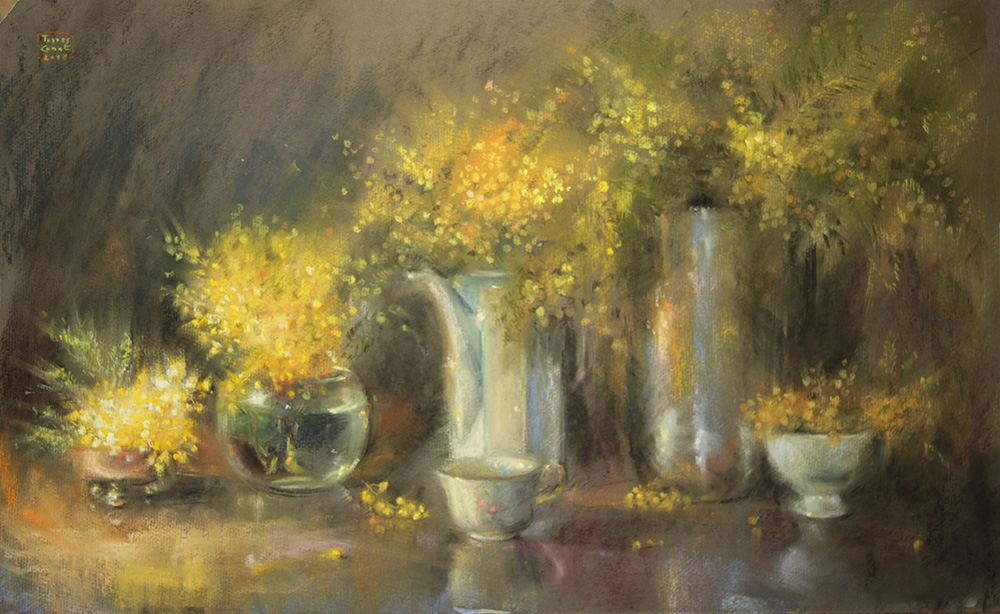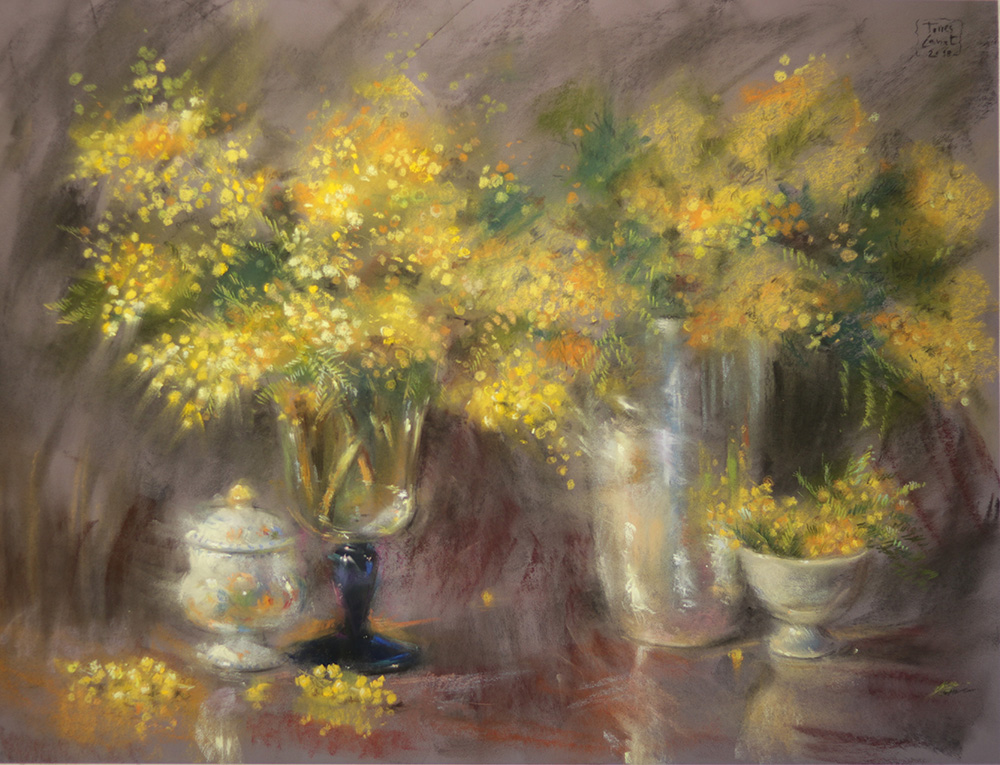 Bodegó amb mimosa _ Pastel (43 x 70)